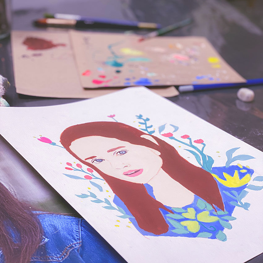 Mediums taught: Acrylic, watercolour, gouache, pen illustration, charcoal, soft pastel, oil pastel, ink, craft.